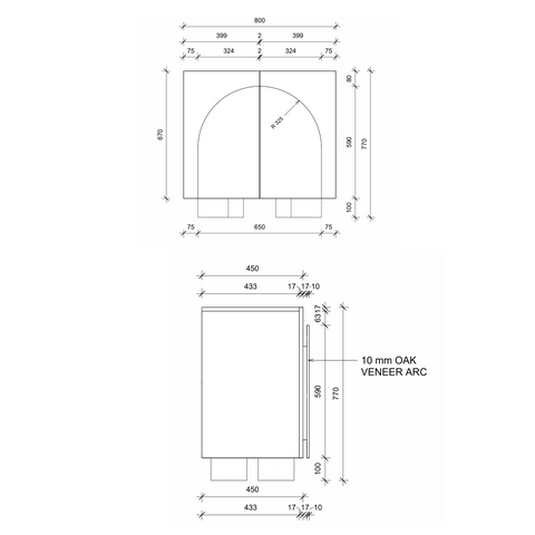 Materials: Oak Veneer carcass and doors. Solid Oak legs.